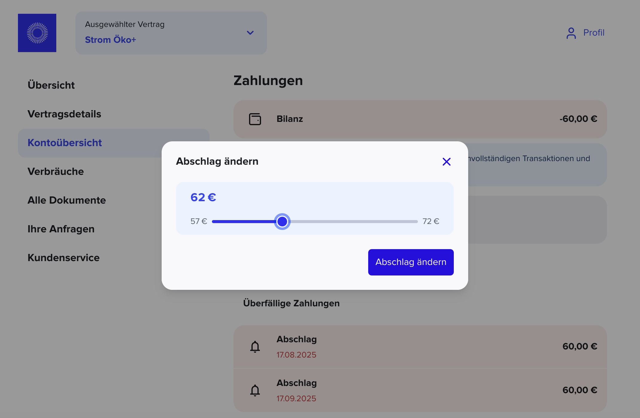 - Abschlagsänderung: Schnelle und einfache Anpassung der monatlichen Abschläge